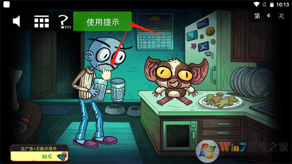 4、如果在关卡中找不到线索,可以点击左上角的【使用提示】,屏幕上就会出现手势按钮,然后按照所给提示操作就可以过关了。