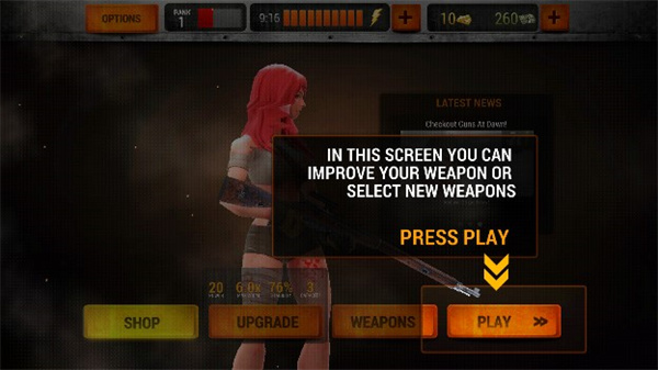 1、下载僵尸猎人游戏之后,点击PLAY进入游戏。