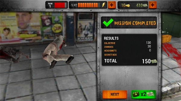 4、当游戏结束后会进入结算阶段,如果玩家爆头射杀僵尸,将会得到更多的金钱。