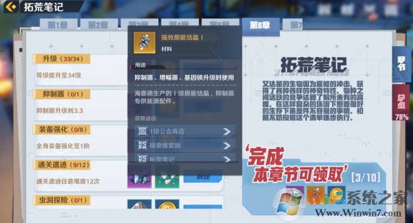 还有探险笔记也是可以得到结晶奖励的,而且探险笔记算是官方的指导,跟着笔记走,前期的战力就是一直合格的。拓荒笔记给了清晰的练度提升目标