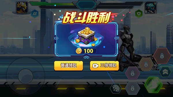 7、成功击败敌人战斗获得胜利,就能领取奖励,本站带来的机甲大乱斗破解版免广告版可以不看广告直接加倍领取金币,快来下载试试吧!
