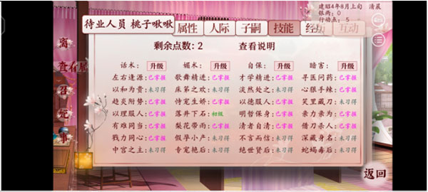 ④每次宴会被太后夸奖/向皇上敬酒获得3个技能点。