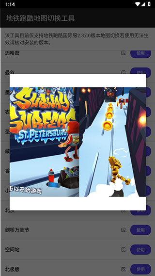 PS:目前支持地铁跑酷国际服【最新版本】进行地图切换,若使用无法生效请使用加速器加速游戏、核对安装的版本。