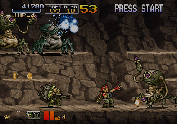4、在经过一番漫长的战斗后主角小队终于打败了她,随着金星女王坠入深渊,引发的大爆炸也摧毁了这座基地,小队成员也被爆炸的气浪击落,好在火星之根出现救下了他们,至此,合金弹头6结束。
