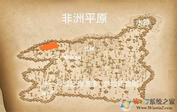1、游戏开始的时候,要往上走,去竹林,因为竹林里有丰富的资源,刷新点下面还有很多危险的动物。2、红色的地方是穿山甲,出发后到竹林,并在竹林附近收集物资。