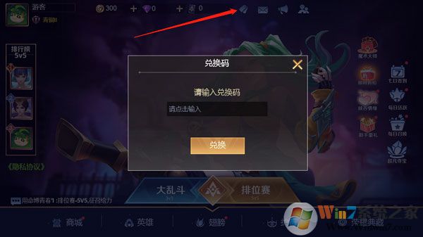 进到游戏中心后,点一下顶端电子邮件左侧的按键就出激活码文本框,随后将以上的兑换码输入进去兑换即可。