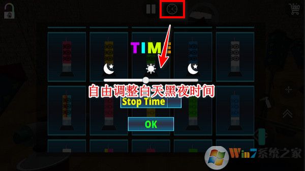 6、点击上方的时钟按钮,还可以自由调整地图的白天黑夜时间,最好的放烟花氛围当然是深夜啊!