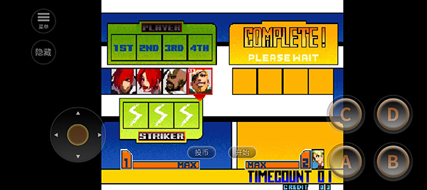 1、滑动摇杆控制分别是控制角色的左右移动和跳和蹲;2、右边四个键位分别是轻拳【A】、轻腿【B】、重拳【C】、重腿【D】;