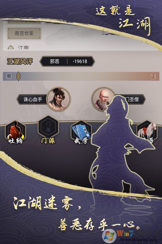 江湖之中,不一样的人生,从这里开始。 千门百派,刀,枪,剑,棍,拳、腿,六类武学任意选择; 人生一世,江湖庙堂,正邪风云,全凭你意; 游历江湖,血雨楼,唐门追魂阵,禁地绝地任你闯; 探索武林,天外飞仙,如来神掌,诸多谜团等你揭开; 壮怀激烈,风云榜,兵器谱,江湖传奇等你谱写。 爱江湖,恨江湖; 身不由己,江湖人在江湖。