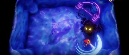 第五阶段是一个黑球,同样是朝我们冲过来,速度有点快,不过不用担心,直接用魔法杖对着BOSS攻击就行,BOSS受到攻击会消失,然后在别的地方出现重新向我们冲过来。