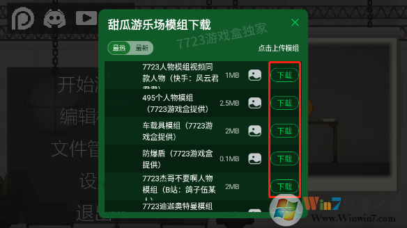 1、进入游戏点击打开7723模组,选择一个模组然后点击下载