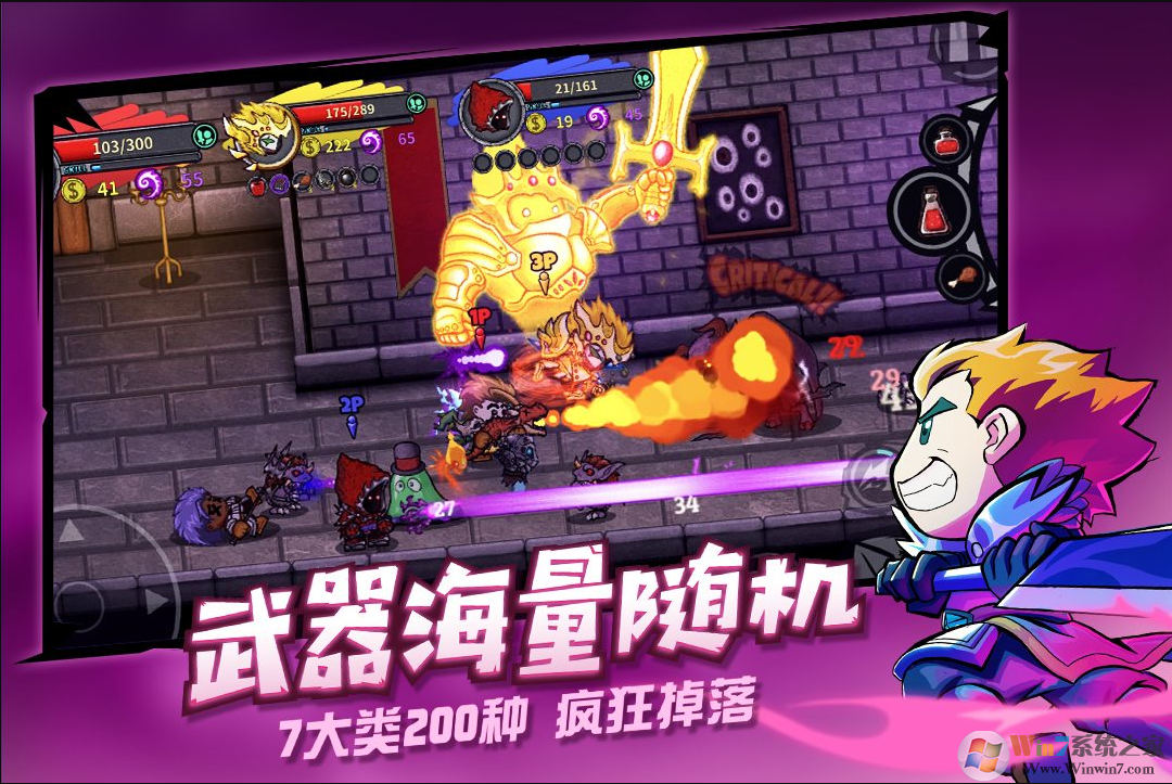 1、横版动作闯关,升级触屏体验回味街机手感,自定义操作玩出花2、大量随机要素,武器/道具/场景/怪物搭配组合,冒险绝不重样