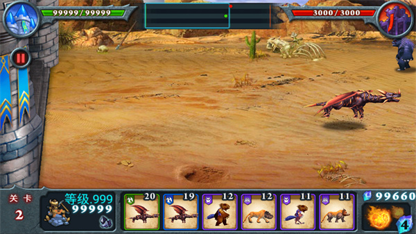 5、战斗策略。不要急于召唤兽王,待对手的兽王接近我方城堡时再应战。将战线控制在我方,有利于新兽王快速加入战斗,形成以多打少的局面,减少兽王的损伤。
