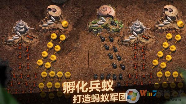 蚁群的数量代表了一个蚂蚁家族的兴衰, 为了蚁国的发展和荣耀, 你必须要尽可能多的提升蚁群的数量, 带领它们抵御外敌, 争夺资源, 扩张势力!
