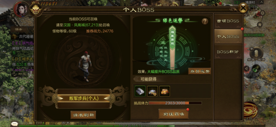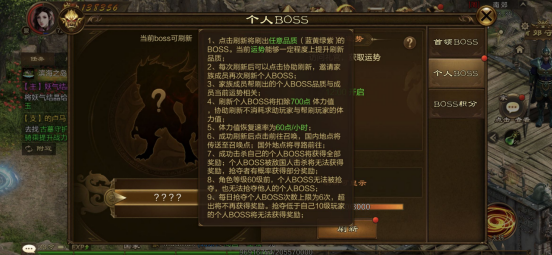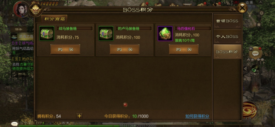 个人boss可以获得boss积分;Boss积分是兑换马装的唯一途径;