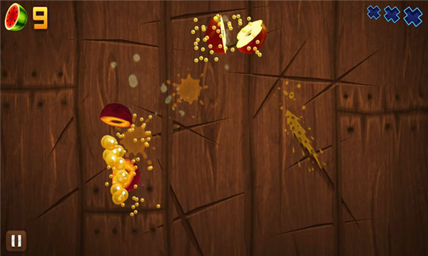 1、经典模式在经典模式中无时间限制,水果和炸弹会不断浮动出现在屏幕上。玩家共有三次因没有切到水果而失误的机会,而只要一切到炸弹游戏就会马上结束。每积累到100分就会自动补充一次以前失去的机会。此模式中会随机出现石榴(连切来加分,分数高低,取决于玩家切的速度)、火龙果(切掉可以+50分)和杨桃(切掉+150;175;200分,分数高低随机)。