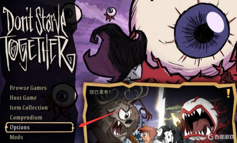 1、玩家进入游戏后首先需要点击游戏菜单界面的options进入游戏设置界面