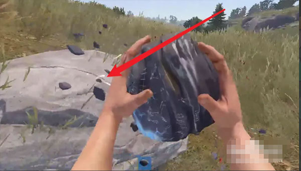 如图所示点击【屏幕右侧】进行普通攻击,砸开石头寻找物资。