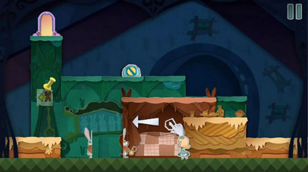 第1-1关:1、按照教学,将蓝色方块向左拖动,触发剧情和爱丽丝对话以后爱丽丝进入镜子里。
