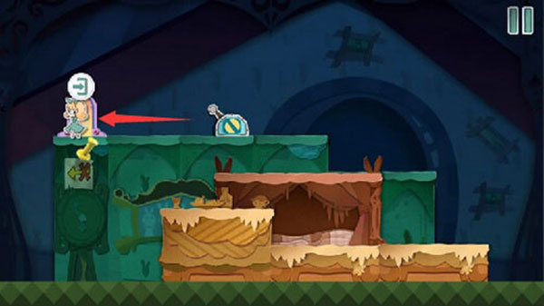 7、将红色方块向右拖动铺路,然后顺着路爬到顶上安装拉杆,让传送门下降。