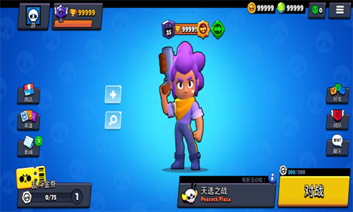 荒野乱斗是一款非常好玩的对战游戏,在这里你可以选择任何人物,使用任何武器,来一场3分钟结束的3V3战斗,荒野乱斗紫服是由非官方的玩家们组成团体,制作热诚特殊魔改版本。所有的角色全部可以直接使用,金币达到999999的最大数字,并且最特别的可以给角色们更换特殊的外观功能,显示别样的模组。游戏玩法延续原版的射击战斗,所有玩法模式的排版更加的简便,以紫色的背景突出显示。