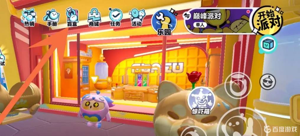 1、进入蛋仔派对游戏中,点击【盲盒】图标,如下图所示。
