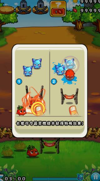 4、接下来就通过像射弹弓一样的把蔬菜抛出去,然后击败敌人。