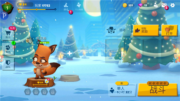 3、每日任务,根据不同任务的特点完成。原地不动35秒这种适合用变色龙或乌龟,跑3000米适合用狐狸,游泳1000米可以用水系动物或者带有潜水器道具的,此外还有指定用某种动物击杀任务、指定击杀某种动物任务、指定在草坪内击杀、指定击杀火中的动物、指定杀水中的动物、连续赢2场、累计击杀数、累计用包数、同一场击杀数、同一场用包数等等。尽量赚金币、钻石和金钥匙吧。