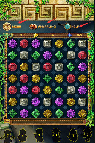 游戏一款消除类游戏,符合“二个一换,三个一消”的基本规则,虽然这样规则的游戏有很多,但是集“图片、动画、音乐、声效、操作性和艺术性”于一身的游戏却并不常见。注意看中间的那个绿色的进度条,上面有标识,这一关需要收集几颗宝石,等收集满足够的宝石后,就能进入下一关。而如果玩家能在最短的时间内就能进入下一关的话,积分也就越高。