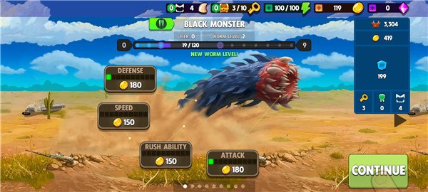 6、通过对蠕虫的各个部位进行升级,可以获得更加强大的能力;