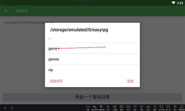 9、点击进入“game”目录然后点击“完成”即可