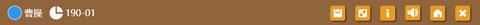 左边第一个图标表示选择了蓝色势力的曹操,第二个图标表示游戏时间190年1月,每年1月系统会投放新武将到城池中