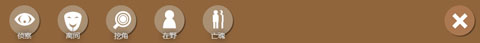 右边从左到右的图标分别是:存档、查看功能、打开帮助手册、开关声音、返回开始界面、关闭窗口