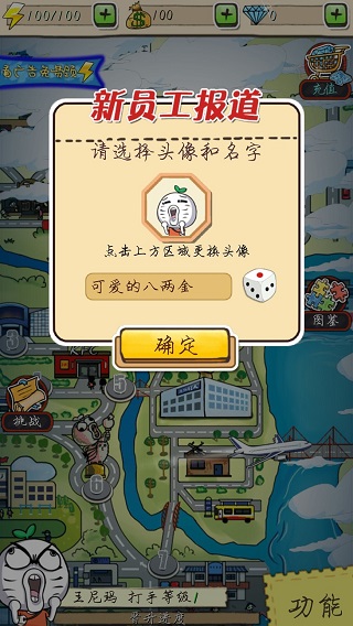 看过暴走漫画的朋友对小编今天推荐的这款游戏并不陌生,这个游戏就是出自于它,对于暴走大事件的王尼玛讲诉的各种无节操段子引起大众欢笑连连,滴滴打手为我们展现了大部分搞笑剧情,在里面你可以申请成为职业打手,赚取佣金,出任CEO,赢取白富美,并最终走向人生巅峰。话不多说,接下来小编将带你熟悉这个充满恶搞趣味的街机世界,进入游戏后会让你输入你的名字和头像你想啥都行,也可以随机选,选好后点接受就进入了第一关。