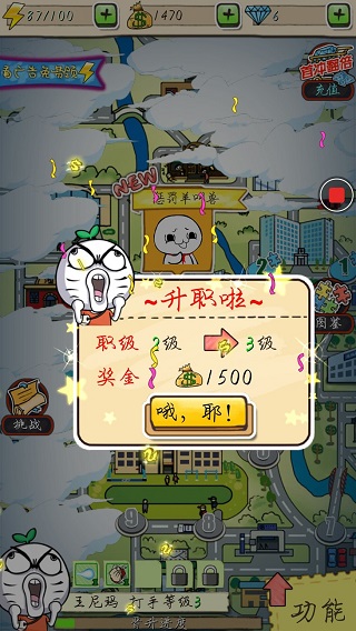 通过不断打,点技能终于把小明打败了,而且还申职了,工资肯定会涨了。