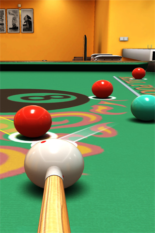 和电脑AI对战,有标准的8球和9球规则。触摸屏幕来调整方向,拖拽右边的力度条,松开后击球。自由球模式,按住任意位置移动母球,再次点击母球确认地点。