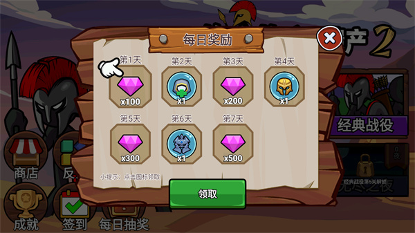 1、进入游戏,签到可领取各种奖励;
