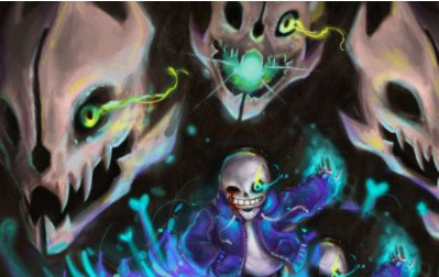 帕骨瑞斯的boss战前期很简单,对话框中会出现长短不一的骨头,碰到就会受到伤害,并且白色需躲避,蓝色要静止才能免受伤害。这时,我们的决心会变成蓝色,不能四处移动,只能在原地进行跳跃以及左右移动。