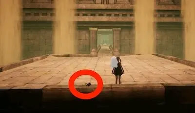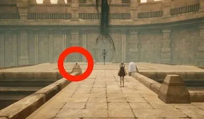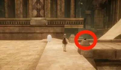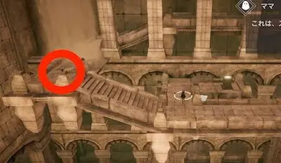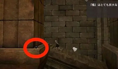 3、打倒第三个雕像后爬楼梯的途中,在较远处有一只黑鸟,很难看到,给三个特大武器强化素材