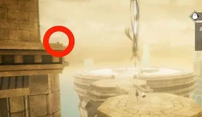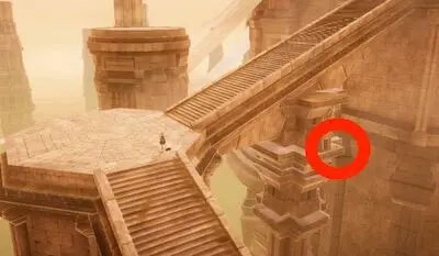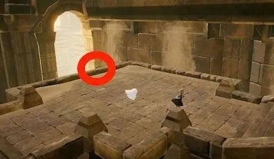 2、打倒第二个雕像后爬螺旋楼梯时前面的柱子上有一只黑鸟,给一张高级门票