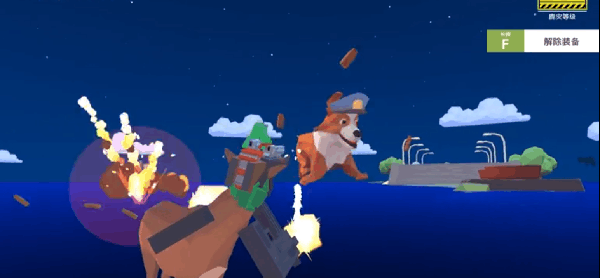 这时候,玩家只要与汪星人保持距离,那么基本就安全了,另外如果坐上机甲,可以提升玩家的输出能力,以及扛伤害然后耗掉汪星人的血量。在这里有个小窍门就是可以打汪星人脚部的机甲从而让汪星人摔倒,然后我们就可以乘机进行伤害攻击了。