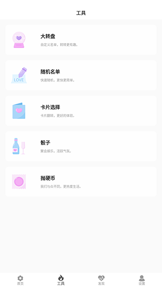 3、多种小工具:骰子、大转盘、抛硬币、随机名单、卡片选择。