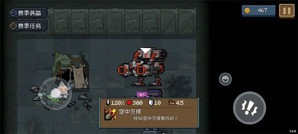 机枪:尽量在空旷兵少的位置,在他面前可以来回闪避移动,也可以在远处边躲边耗他大