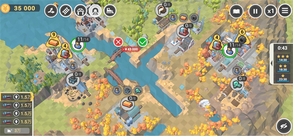 第二个难点:不要摧毁超过5000的物体,尽量避开石头树林等物体,可以适当绕路,也要注意绕路资金缺乏。