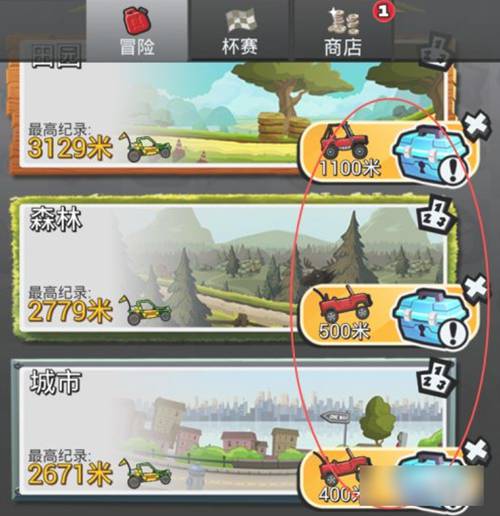 但是你要把车辆升到一定等级是要很多金币的,所以你得去冒险板块攒金币和车辆配件。