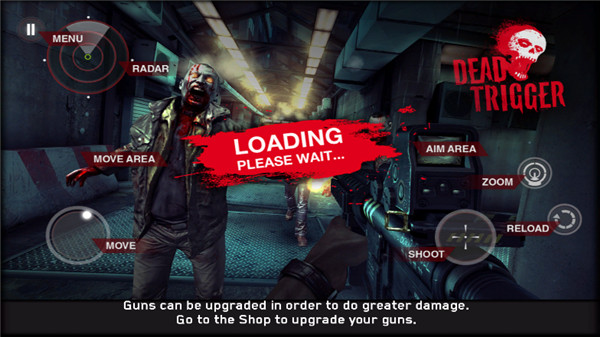 右下角有三个按钮,上面那个是装子弹,中间那个是射击,下面那个是近距离调试(这样射击就比较精准)。当瞄准器变成红色就说明对准僵尸了,赶紧射击吧。左上角的地图也是要看的,有红色点点出现就说明僵尸出现咯。