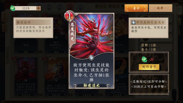 2、御龙系列卡牌只能通过灵石制作;碎云系列卡牌通过活动所赠送的碎片来合成。