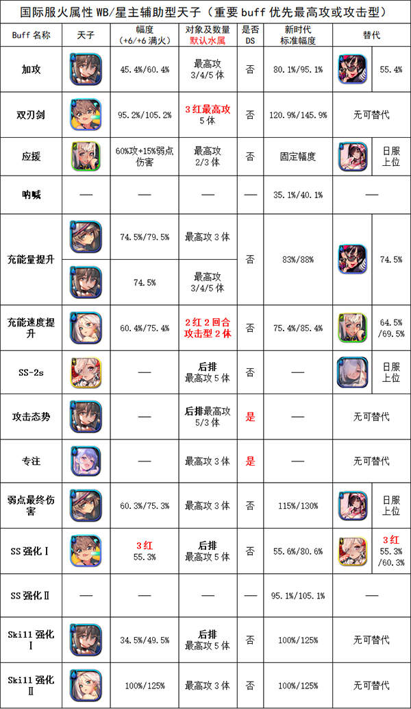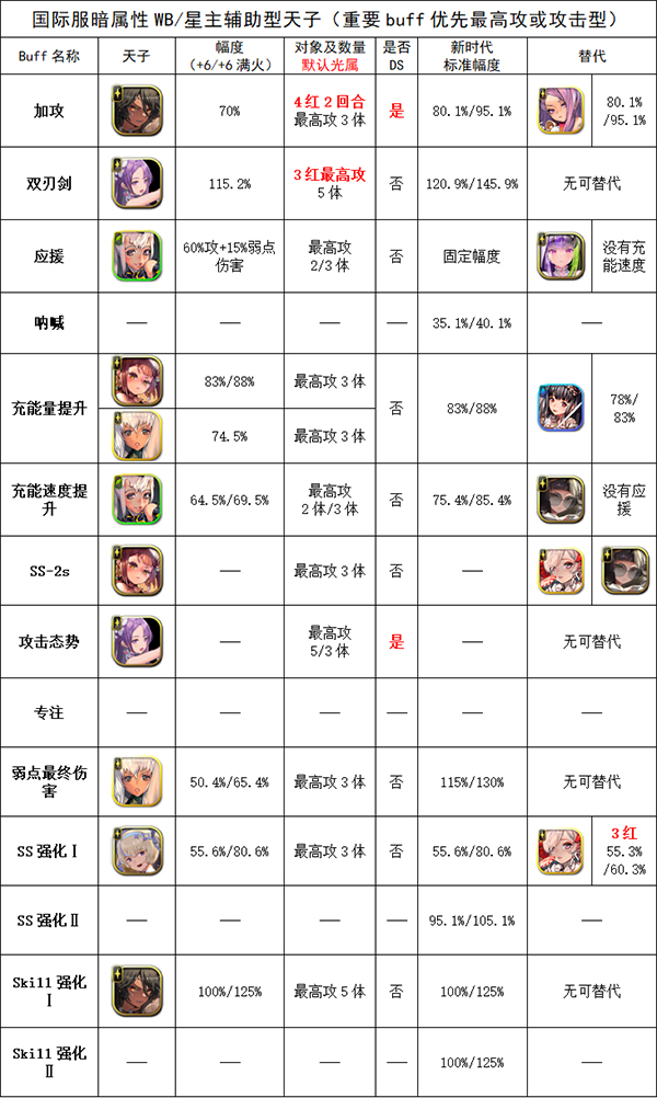 游戏中仅有的一位增加全体队友攻击力buff的角色,对于没什么Child的新人,在世界Boss的20人战中发挥亮眼。