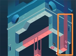 第五章:本章节的设计较为独特,玩家先控制粉色建筑下来,然后转动它,使得萝尔母女可以站到它上面。接到人后,就再次移动它,将小人们送到门处。第二个场景有许多传送门,玩家可以转动左侧传送门于下图这个位置,让女儿可以通过它来到萝尔身旁,并按下按钮,再次转动此建筑,让女儿去按另一个按钮,移动下面的建筑,母女二人即可先后进门。