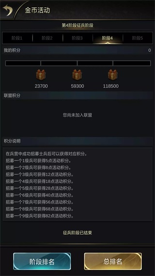 杀敌阶段周五开启,持续三天,周日结束。积分来源于击杀不同的士兵,对方士兵等级越高,自身获得的积分则越高。前四个阶段都是为了第五阶段做准备,相信前面已经获得靠前名次的领主在这一阶段也不会太差。